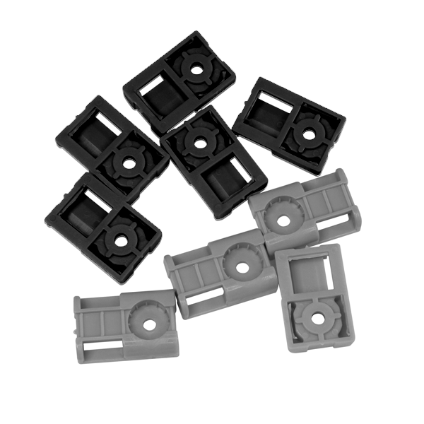 Оснащены специальным отверстием под хомут, что позволяет надежно фиксировать пучки проводов или другие легкие предметы с помощью всего одного винта или самореза.